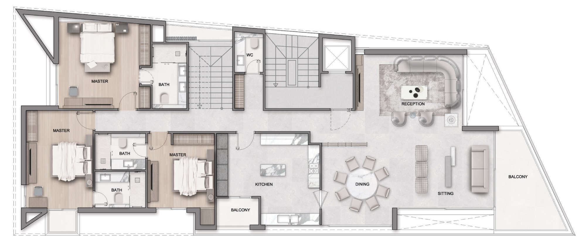 Sema Hills One expresses balance and architectural clarity. Its multi-level organization allows residences to unfold naturally, creating a refined separation between social and private spaces. Select apartments extend outward through private terraces, enriching everyday living with light and openness. Within the community, it establishes rhythm and cohesion, forming a calm architectural anchor for the project.